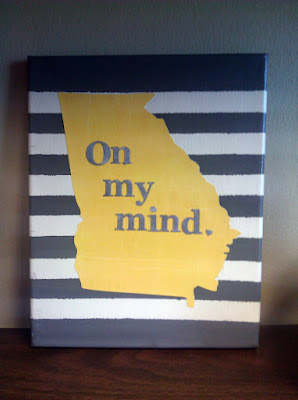 Originally, I thought about writing or painting "on my mind" on the state, but I chickened out. I decided to cut it out with my Silhouette and used the "Georgia" font.